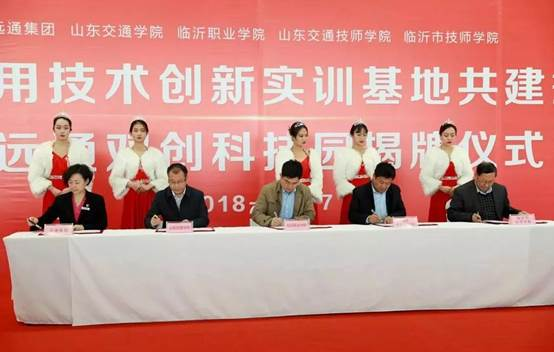 山东交通学院、临沂职业学院、山东交通技师学院、临沂市技师学院和远通集团签订合作协议,共建汽车应用技术创新实训基地,大力加强实训平台载体建设,切实提升技术技能人才实训能力。远通双创科技园现场揭牌,将为创业者提供创业指导和发展机遇。