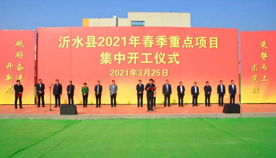 3月25日,沂水县举行2021年春季重点项目集中开工仪式,市委常委、统战部长边峰,市人大常委会副主任冯安,沂水县委、县政府主要领导参加仪式。此次共有26个项目集中开工,总投资143.6亿元,其中工业项目12个、城建项目1个、农业项目5个、民生项目7个、现代服务业项目1个,过10亿元6个、过5亿元4个。仪式在七星柠檬年产50万吨食品添加剂二期项目设主会场。