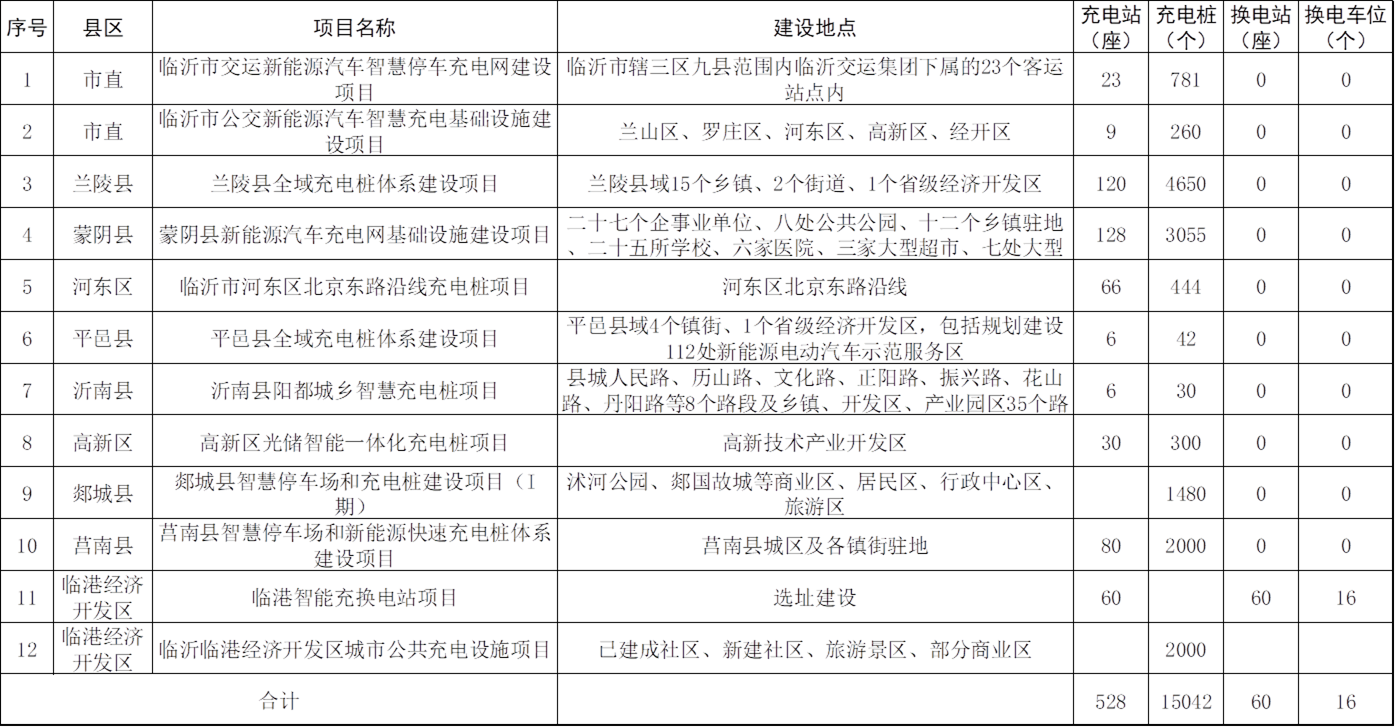 附表4:“十四五”临沂电动汽车充电桩建设项目