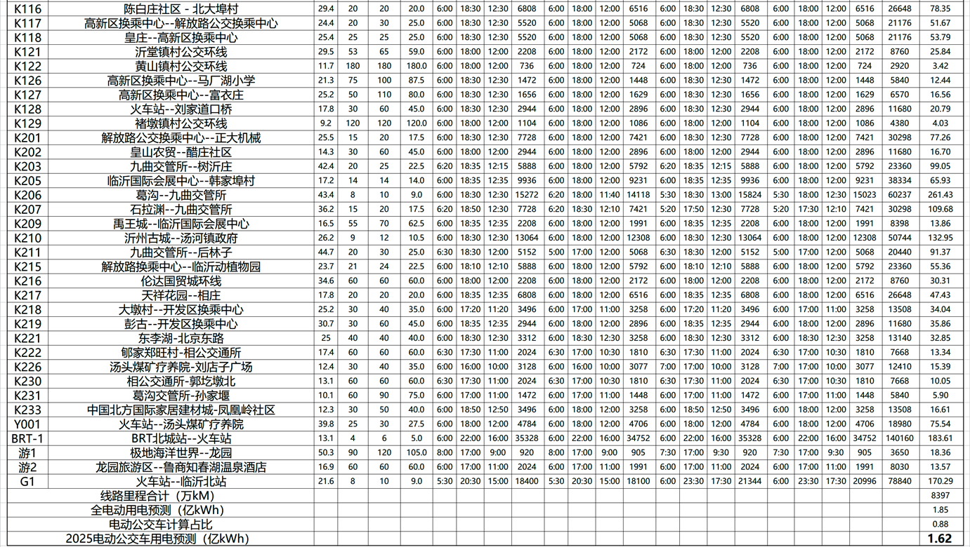 临沂市公交线路2025用电量预测计算表3(续)