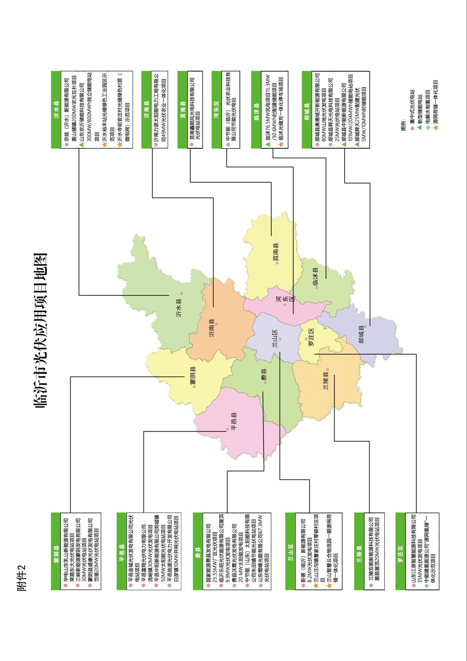 1.兰山区华东有色金属城8.2兆瓦光伏发电项目。 2.河东区汤泉20兆瓦节能光伏电站项目。 3.郯城县红花镇80兆瓦山地光伏发电项目一期工程。 4.郯城县舜天光电科技有限公司25兆瓦光伏电站项目。 5.兰陵县双能菌菇20兆瓦屋顶光伏电站项目。 6.沂南县岸堤力诺49兆瓦光伏电站项目。 7.平邑朝阳金城20兆瓦光伏电站项目。 8.平邑富翔流峪镇30兆瓦光伏发电项目。 9.平邑中阳郑城50兆瓦太阳能光伏并网电站一期工程。 10.平邑县白彦镇10兆瓦并网光伏电站工程。 11.莒南县左山鑫顺10兆瓦光伏电站项目。 12.国家能源费县发电有限公司25.55兆瓦厂区光伏项目。 13.费县经开区鲁铜有色金属公司屋顶9.9兆瓦光伏发电项目。 14.费县沃霖20兆瓦太阳能发电项目。 15.费县朱田节能16兆瓦光伏电站项目。 16.费县熠峰67.3兆瓦光伏电站项目(一期47.3兆瓦工程、二期20兆瓦工程)。 17.蒙阴县常路东大光伏电站项目。 18.坦埠三峡30兆瓦光伏电站项目(一期10兆瓦、二期20兆瓦工程)。 19.蒙阴县岱崮20兆瓦光伏电站项目(二期10兆瓦、一期10兆瓦工程)。 |