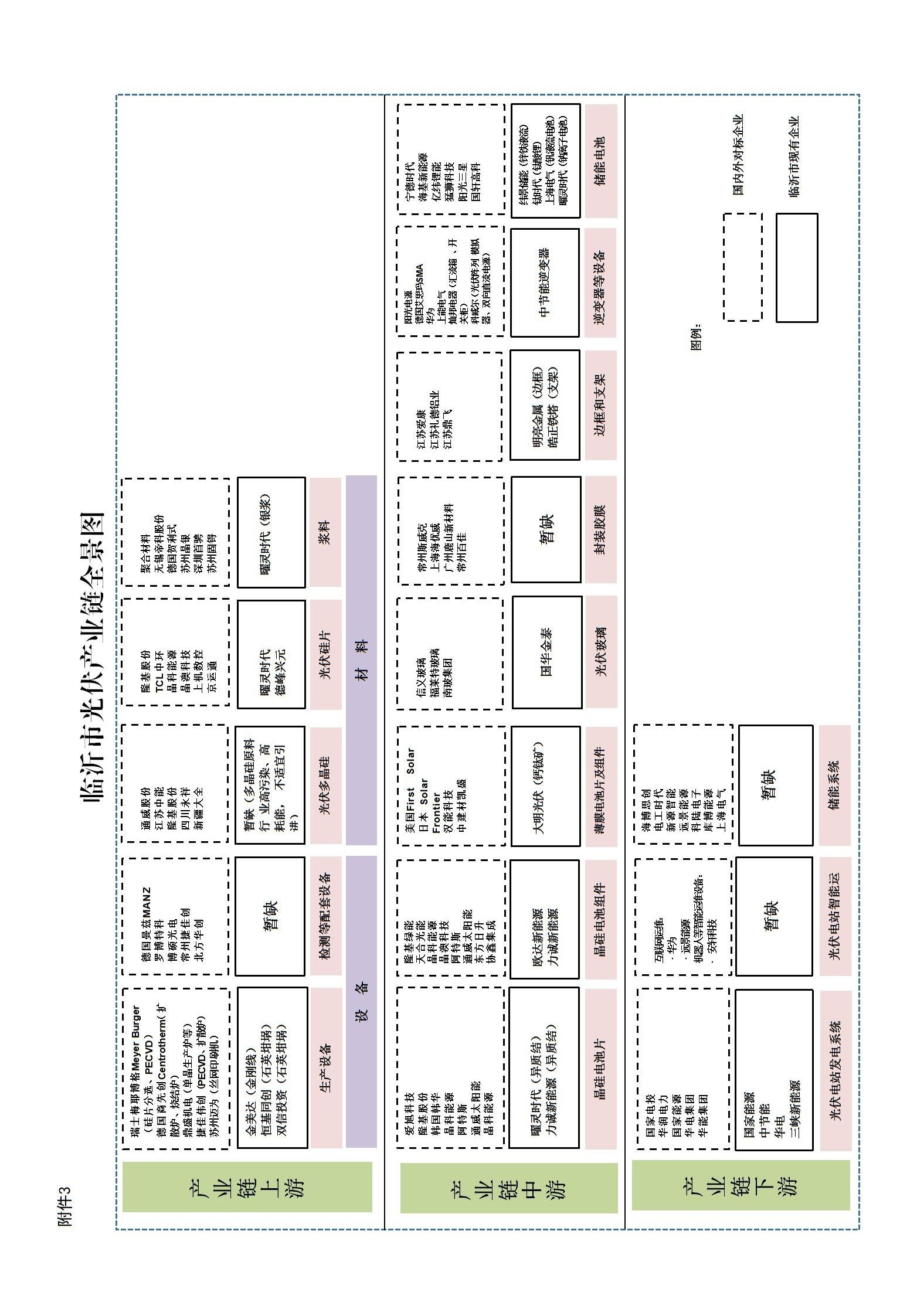 1.重点招引企业 (1)光伏支架:意华股份、中信博。 (2)浆料:聚合材料、帝科股份和苏州固锝。 (3)胶膜:福斯特、斯威克、海优新材、赛伍技术。 (4)靶材:江丰电子、隆华科技、阿石创。 (5)背板:赛伍技术、中来股份、明冠新材、乐凯胶片、福斯特。 (6)边框:永臻科技、营口昌泰、中信渤海和鑫铂股份。 (7)接线盒:通灵股份、快可电子、谐通科技、江苏海天。 (8)金刚线:美畅股份、原轼新材、聚成科技、高测股份、恒星科技、岱勒新材、三超新材、东尼电子。 2.重点项目 (1)河东区临沂皓正铁塔制造有限公司年产1000万(台)套(二期)项目。 (2)兰山区曜灵时代光伏银粉银浆项目。 (3)临沭明亮金属1500万套光伏铝边框生产项目。 (4)莒南县美达电力实业有限公司绿色节能型智能电网用电线电缆开发与应用建设项目。 (5)蒙阴县山东金美达年产金刚线母线原料黄丝1000吨、金刚线2000万千米项目。 |