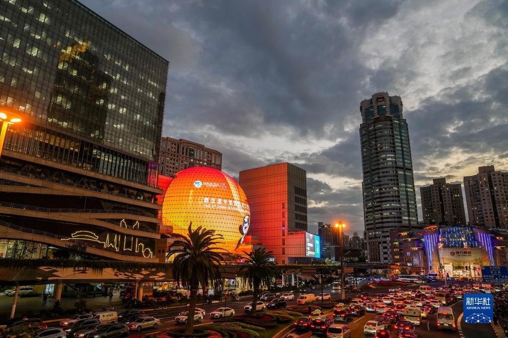 2022年11月4日傍晚拍摄的上海徐家汇商圈。新华社记者 丁汀 摄
