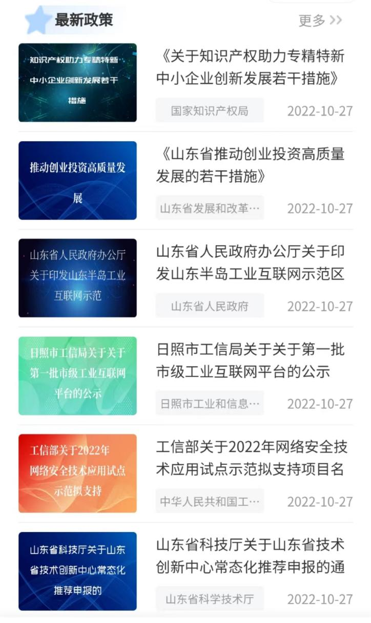 在最新政策区,按照政策发布的时间顺序,依次罗列平台最新收录的政策。