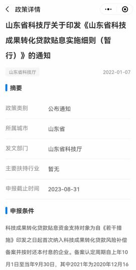 为深入贯彻落实中央和我省出台的一揽子稳经济政策措施,应对超预期因素冲击,近日,山东省稳住经济基本盘惠企政策平台微信小程序上线运行。