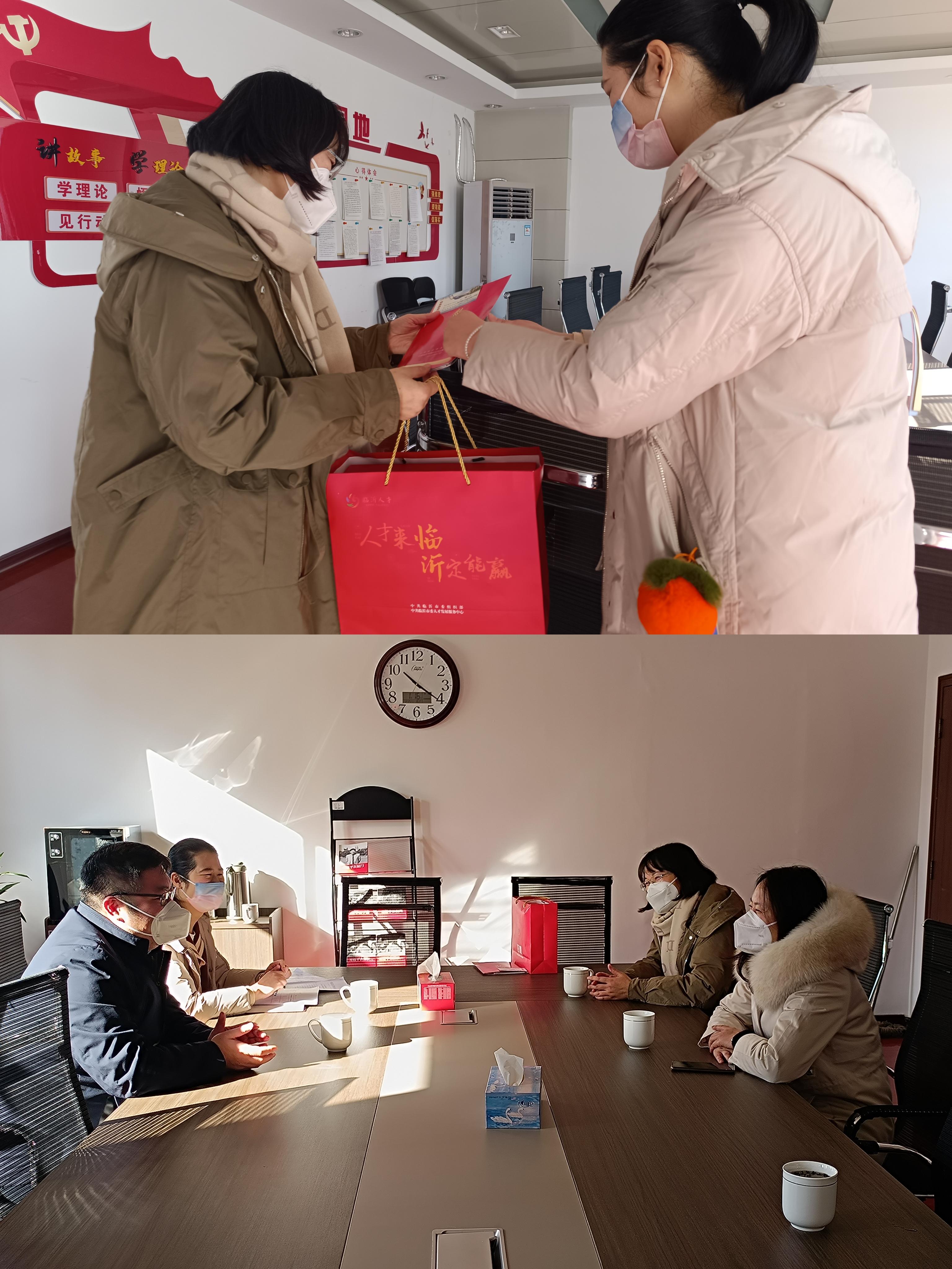 (市区域协同发展服务中心副主任叶子枫同志带队到兰山街道统计站拜访山东省基层统计人才刘彬同志,赠送伴手礼,向人才送去节日问候,并座谈交流我市经济社会发展情况及人才政策。)
