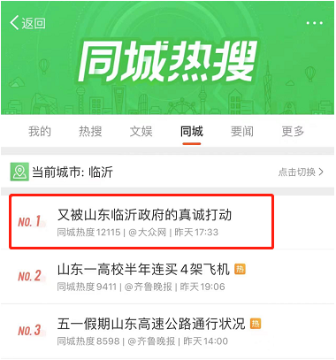 4月29日,临沂推行国家法定节假日及双休日免费乘坐公交车第一天,引发众多市民网友热议和点赞,#又被山东临沂政府的真诚打动#话题登上同城榜第一位,全国热搜最高TOP15。一辆辆载满真诚和真情的新能源公交车行驶在市区的大街小巷,在免费乘坐公交车的实惠中,市民真正体验到了政府的民生温度和真情实意。