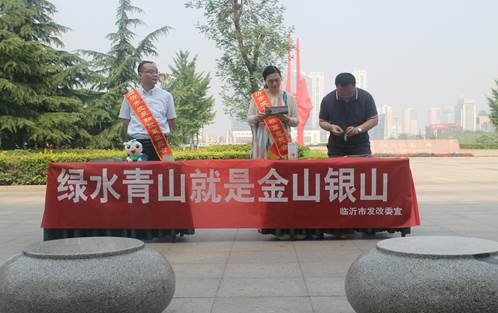 宣传活动期间,市发改委在市区人民广场设置宣传站,通过悬挂条幅及标语,发放宣传资料,讲解节能低碳小常识等形式,向广大群众宣传展示节能、低碳、环保等相关知识,普及低碳环保常识,动员引导践行人与自然和谐共生和绿色发展理念,从身边小事做起,共同履行环保责任,呵护环境质量,共建美丽家园。活动期间,共发放低碳生活绿色家园宣传页500余份,接受群众咨询80余次。通过全方位的宣传体验,充分释放和传递改善环境质量,广泛凝聚社会共识,营造广大市民共同参与全市生态文明建设氛围,努力建设绿色临沂。