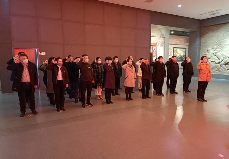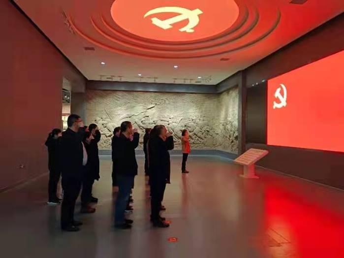 在华东野战军总部旧址纪念馆,大家怀着无比崇敬的心情,深入学习了革命先辈的光辉历程。馆内陈列的一件件革命文物,都在讲述着革命人艰苦斗争的岁月,现场悠扬的歌声——“蒙山高 沂水长 军民心向共产党”带领大家回到了沂蒙人民奋勇支前、不畏生死的纷纷战火年代,每一名党员干部都感受到了老一辈革命家和沂蒙人民身上根植的勇往直前的大无畏革命精神,深刻领会到沂蒙精神在新时期的重要意义。大家面对党旗,重温入党誓词,在庄严肃穆声中立下发改人为新时代高质量发展贡献力量的誓言。