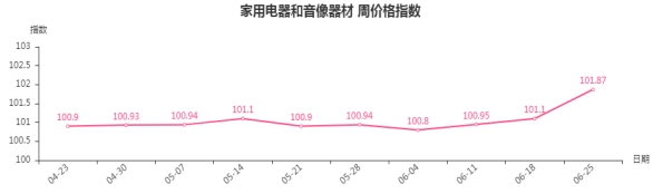 一、家用电器和音像器材类周价格指数环比上涨