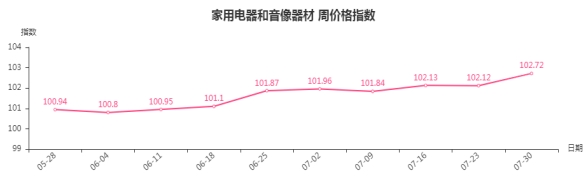一、家用电器和音像器材类周价格指数环比上涨
