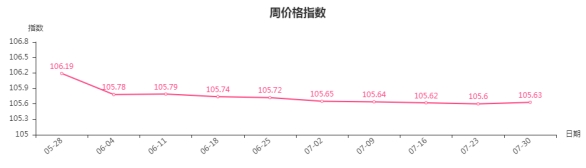 本周服装市场行情平平:一方面降雨天气导致市场客流量较前期明显减少,场内交易量下滑;另一方面夏季服装服饰销售进入尾声,商户开始筹备秋装上市,而夏季服装服饰打折促销较多,价格下跌。从具体规格品来看,男士T恤82032本周均价37.795元/件,较上周下跌19.60%;女式休闲裤5079本周均价65.86元/条,较上周下跌5.30%;女式短袖睡衣茉莉9638本周均价65.33元/件,较上周下跌1.50%。