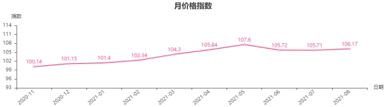 从月价格指数曲线走势来看,8月份,临沂商城价格指数小幅上涨(见下图)。
