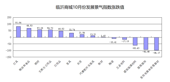 进入11月份,气温下降,对户外建筑施工造成一定影响,钢材、建材等市场进入季节性淡季,日用品、粮油等市场销售旺季深入,有望实现新增长,总体来看,商城发展景气指数涨劲不足。预计11月临沂商城行情保持平稳。