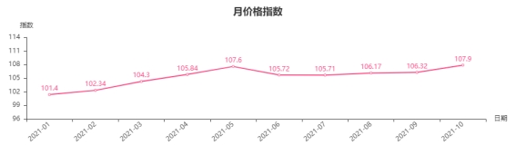 从月价格指数曲线走势来看,10月份,临沂商城价格指数继续小幅上涨(见下图)。