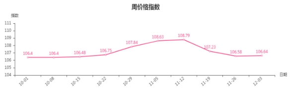 据临沂商城价格指数信息系统监测,本周临沂商城周价格总指数为106.64点,环比上涨0.06点。