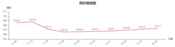据临沂商城价格指数信息系统监测,本周临沂商城周价格总指数为107.37点,环比上涨0.15点。