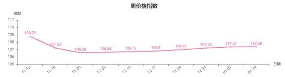 本周钢材类指数稳中略升,进入冬季,市场处于销售淡季,下游需求减弱,市场业户走货量减少,以小额订单走货为主,价格震荡运行。从市场具体规格品看,18mm工字钢价格4592元/吨,上涨0.5%,350*175mmH钢价格3749元/吨,上涨0.2%,HRB400 8mm盘螺钢价格4470元/吨,上涨1.1%,50mm镀锌圆管价格5786元/吨,上涨2.3%,1.2*1250mm热镀锌板价格5500元/吨,上涨3.4%。