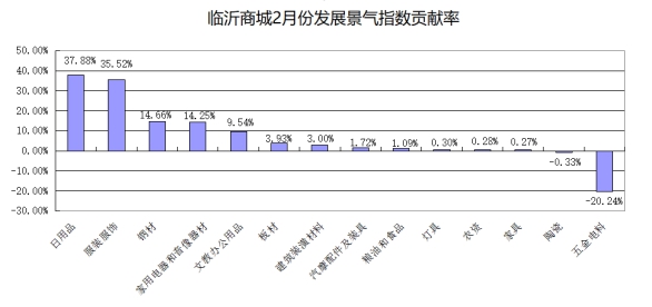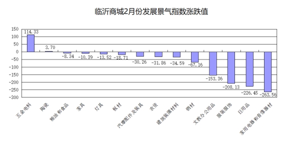 现将2月份发展景气指数涨跌幅较大和代表性较强的五金电料、家用电器和音像器材、日用品、服装服饰等市场行情作简要分析。