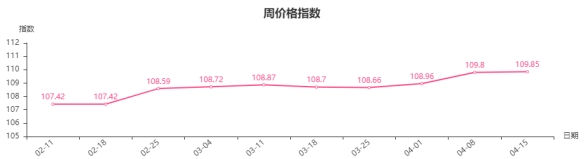 近期,受国际影响和疫情防控影响,生产、运输环节成本增加,为缓解运营压力,生产企业和经销商上调了部分产品销售价格,带动日用品产品平均销售价格小幅上涨,致使本周日用品类周价格指数上涨。从具体规格品看,欧韩甲油本周均价为6.60元/盒,价格环比上涨2.80%;摩登女孩弹力发绳本周均价为5.77元/个,价格环比上涨2.70%;60cm普通无框画本周均价为109.00元/盒,价格环比上涨2.80%;葫芦型骨瓷青花瓶本周均价为104.50元/个,价格环比上涨4.10%;吴腾/868筷子本周均价为3.10元/盒,价格环比上涨3.70%。
