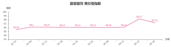 五、服装服饰类周价格指数环比下跌