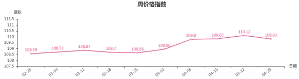 据临沂商城价格指数信息系统监测,本周临沂商城周价格总指数为109.83点,环比下跌0.29点。