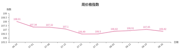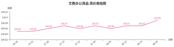 本周,文教办公用品类周价格指数收于106.89点,环比上涨0.02点。其中,文化办公用品类指数上涨0.04点,是拉动文教办公用品类周价格指数上涨的原因。