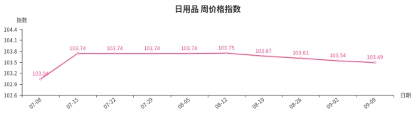 六、日用品类周价格指数环比下跌