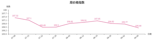 气温凉爽,加之中秋节日临近,餐饮、家工装等行业转旺,陶瓷餐具、面盆等产品市场需求增加,市场整体行情转好,且散户客流量增加,带动陶瓷产品平均销售价格小幅上涨,致使本周陶瓷类周价格指数小幅上涨。从具体规格品看,杭州雅丹2289柜式面盆本周均价为1600.00元/套,价格环比上涨6.70%;广东地王1036座箱式座便器本周均价为870.00元/套,价格环比上涨1.60%;18*18陶瓷盘本周均价为13.75元/个,价格环比上涨2.20%;龙艺/800陶瓷盘本周均价为17.86元/个,价格环比上涨1.30%。