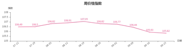 随着假期结束,日用品类产品市场需求放缓,美术工艺品、箱包、护肤美容等产品销量减少,市场散户客流量减少,市场销售主要以中下游经销商批发为主,带动平均价格下降,致使本周日用品类周价格指数小幅下行。从具体规格品看,瑞牌S6112书包本周均价为81.27元/个,价格环比下降4.70%;英皇PC827-28拉杆箱本周均价为605.52元/个,价格环比下降4.70%;30厘米树脂金蝉本周均价为130.00元/个,价格环比下降2.50%;丽兰妃睫毛膏本周均价为5.05元/支,价格环比下降2.70%。