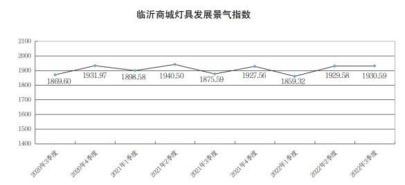 三季度灯具类发展景气指数收于1930.59点,同比上涨55.00点,涨幅2.93%;环比上涨1.01点,涨幅0.05%。
