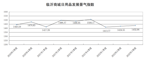 三季度日用品类发展景气指数收于1432.96点,同比下跌53.99点,跌幅3.63%。