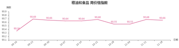 本周,粮油和食品类周价格指数收于90.66点,环比下跌0.02点。从盘面看,干果类和粮油类分别下跌0.17点和0.02点,是导致粮油和食品类周价格指数下跌的主要原因。