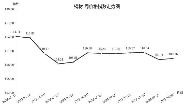 一、钢材类周价格指数环比上涨