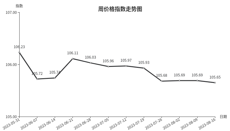 据临沂商城价格指数信息系统监测,本周临沂商城周价格总指数为105.65点,环比下跌0.04点。