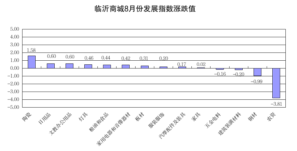 现将8月份发展指数涨跌幅较大和代表性较强的陶瓷、日用品、农资、钢材等市场行情作简要分析。