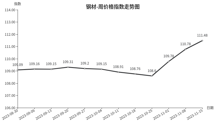 一、钢材类周价格指数环比上涨
