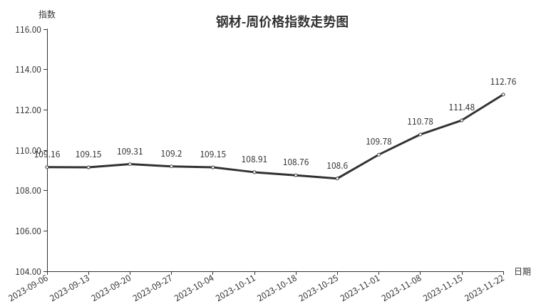 一、钢材类周价格指数环比上涨