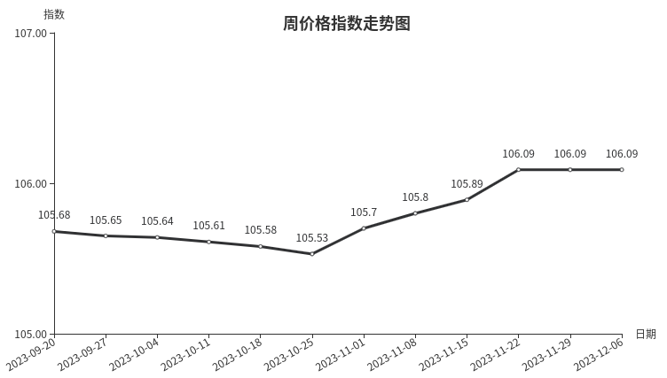 据临沂商城价格指数信息系统监测,本周临沂商城周价格总指数为106.09点,环比上周持平。