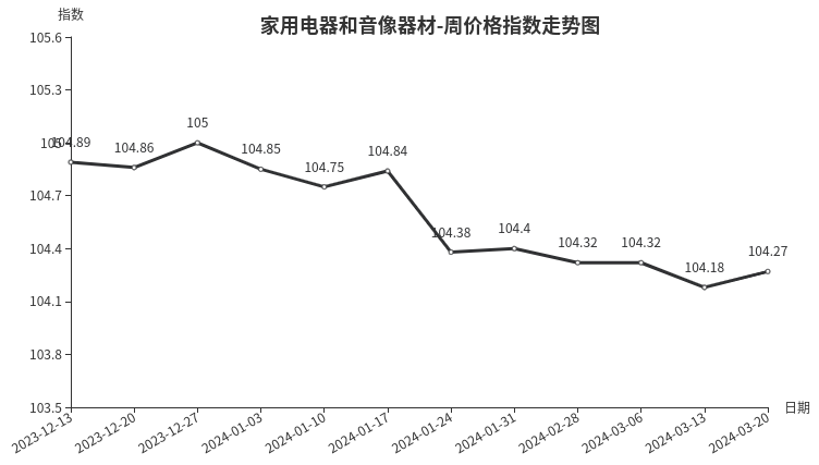 一、家用电器和音像器材类周价格指数环比上涨