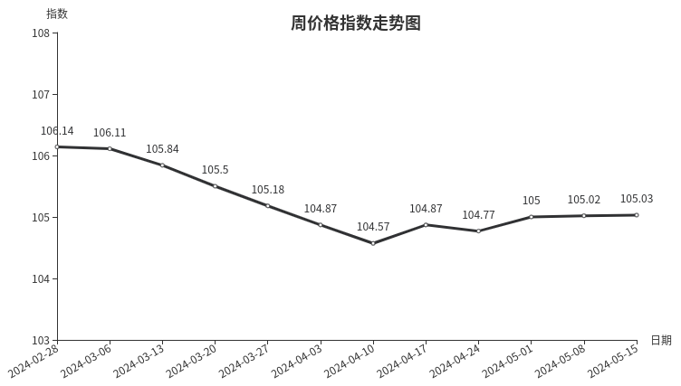 本周陶瓷类周价格指数稳中略涨。近期气温适宜,住房装修改造等刚需施工率增加,餐饮行业行情转暖,地板瓷砖、陶瓷厨用器皿等产品市场需求释放,销量环比上涨,市场销售中零散客户占比增加,带动陶瓷产品平均销售价格小幅上涨。从具体规格品看,翡翠石PR820180*80抛光砖本周均价为48.00元/㎡,价格环比上涨1.82%;十斤绿广口酒瓶本周均价为50.00元/个,价格环比上涨1.36%。