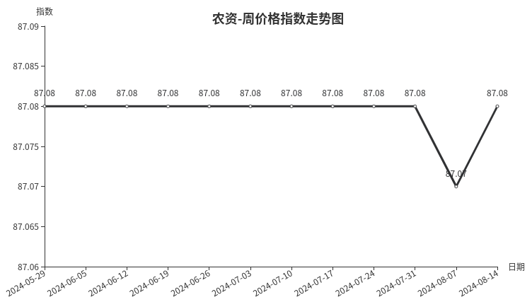 本周,农资类周价格指数收于87.08点,环比上涨0.01点。从二级分类看,农药类、禽兽用药类、种子类指数分别上涨0.14点、0.10点、0.02点,共同拉动指数整体上涨;农膜类、养殖器具类价格指数与上期持平。