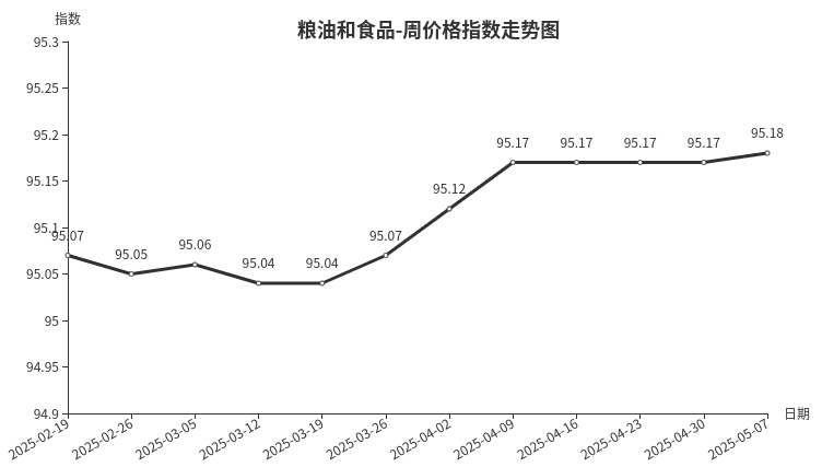 本周粮油和食品类周价格指数出现小幅上涨,涨幅0.01%,涨幅较大的主要是调味品类。五一假日期间,饭店、小吃摊、户外烧烤迎来旺季,拉动调味品消费需求,其中复合调味料、香辛料、蚝油、食醋、酱油等批发采购升温,销量和价格齐涨。干果类中上涨品种主要涉及大枣、无花果等果实类食品,五一节前商超积极备货拉动价格有所上涨,节日期间延续上涨走势,节后价格应会回落。从具体规格品看,清泉湖/2.2L/山西醋本周价格8.00元/桶,较上周上涨0.63%;鸡精/2500g本周价格75.00元/袋,较上周上涨0.46%;甘肃小茴本周价格26.00元/公斤,较上周上涨0.58%。
