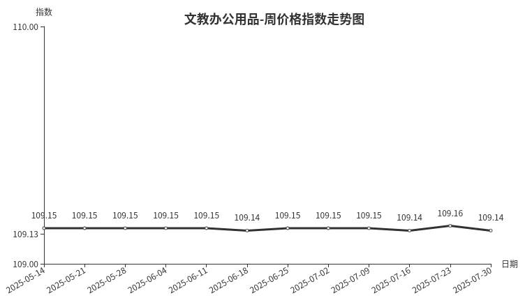 本周,文教办公用品类周价格指数收于109.14点,环比下跌0.02点,从盘面看,体育娱乐用品、文化办公用品均出现小幅下跌。当前正处于暑假期间,文教、办公管理用品等产品需求减弱,中下游经销商消化库存,进货量减少,市场交易额环比下降;另外受电商价格冲击影响,部分产品价格小幅下调,带动平均销售价格走低。