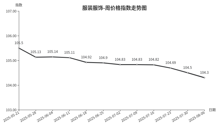 五、服装服饰类周价格指数环比下跌