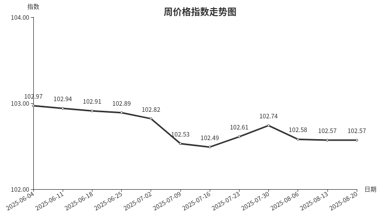 据临沂商城价格指数信息系统监测,本周临沂商城周价格总指数为102.57点,环比持平。