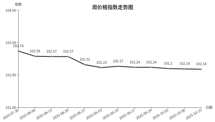 据临沂商城价格指数信息系统监测,本周临沂商城周价格总指数为102.18点,环比下跌0.01点,跌幅0.01%。