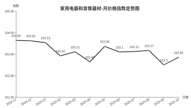 一、家用电器和音像器材类月价格指数环比上涨