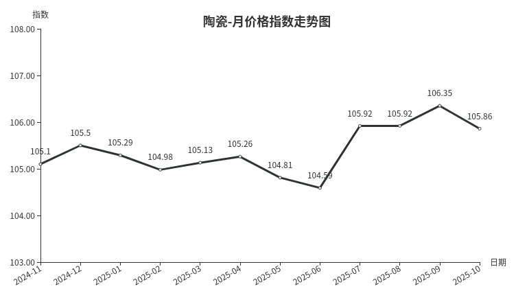 三、陶瓷类月价格指数环比下跌