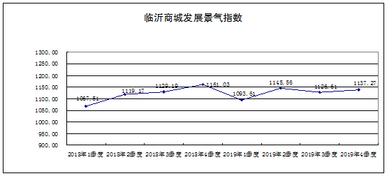 据临沂商城指数系统监测,2019年临沂商城发展景气总指数收于1125.77点,同比上涨6.54点,涨幅0.58%;临沂商城价格总指数收于99.94点,同比下跌0.04点,跌幅0.03%。现将2019年临沂商城指数运行情况报告如下。(注:2019年临沂商城年度各项指数指标均为全年所有月份的算术平均值)